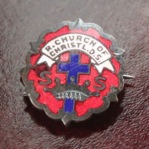 深紅のエナメルと鮮やかな青い十字架が目をひくモルモン教のブローチ(ピンバッジ)です。製造当時のエナメルのムラや使用による傷がヴィンテージ感たっぷりのアイテム。美しいコレクティブルなブローチです。