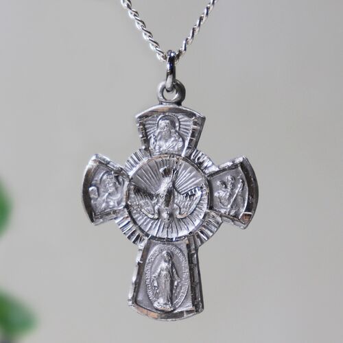 STERLING SILVER(925)製ヴィンテージ4Way Crossメダイペンダントネックレスです。カトリック教会で人気の高いイエスや聖母マリア、聖ヨセフや聖クリストファーなどが集まったメダイネックレスです。